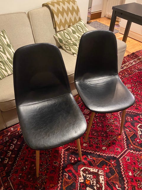 150 €Mustat nahkaiset ruokapöydän tuolit 6 kplLappeenranta, Lappeenranta keskus, Etelä-Karjala2 pvLisää suosikiksi.