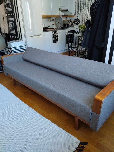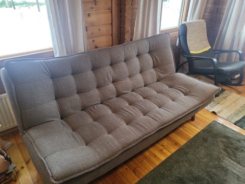Vuodesohva sopii vieraiden majoitukseen ja omaksi sängyksi pieneen kotiin