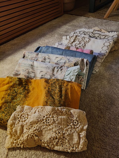 Kekseliäs ompelija haalii käytettyjä kankaita
