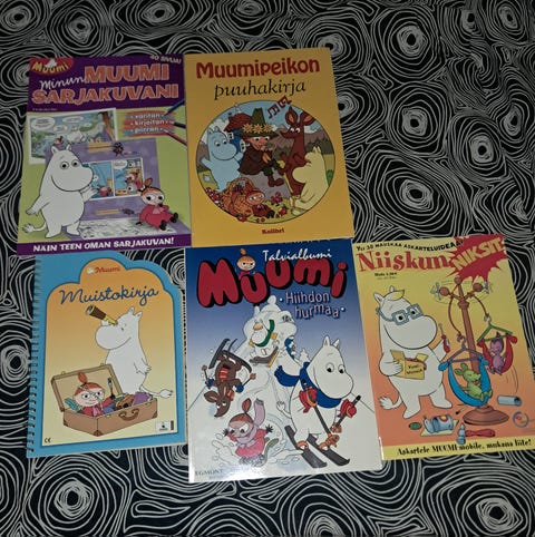 6 €Erilaisia Muumi-kirjoja, Imatra/postiImatra, Karhumäki-Karhukallio, Etelä-Karjala22.11.Lisää suosikiksi.