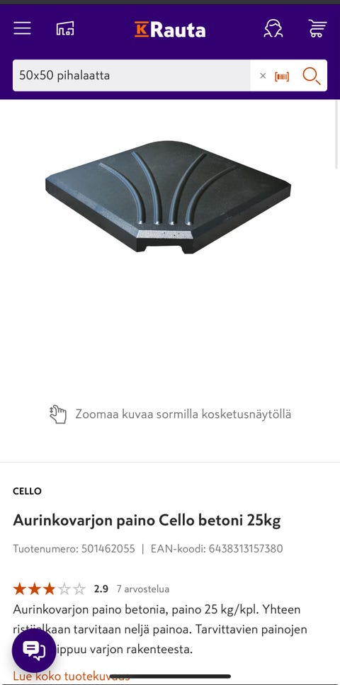 45 €Aurinkovarjo 300 cm + painava (noin 30 kg) betoninen jalkaTurku, Räntämäki-Saramäki, Varsinais-Suomi16.10.Lisää suosikiksi.