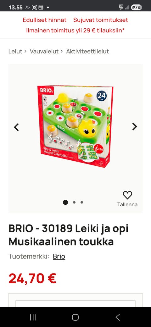 Antiikki ja taide (6)Auto-, vene- ja moottoripyörätarvikkeet (16)Elektroniikka ja kodinkoneet (9)Eläimet ja eläintarvikkeet (1)Koti ja sisustus (6)Lapset ja vanhemmat (2 066)Liiketoiminta ja palvelut (1)Piha ja remontointi (2)Urheilu ja ulkoilu (2)Vaatteet, kosmetiikka ja asusteet (14)Viihde ja harrastukset (83)