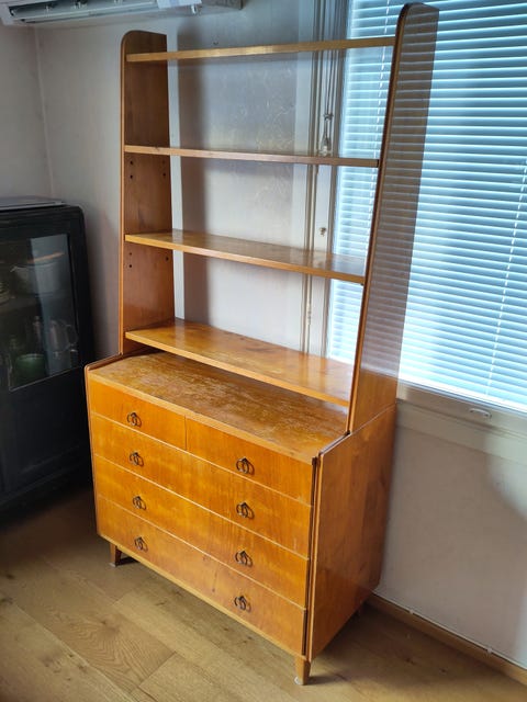 Vanha puinen hylly