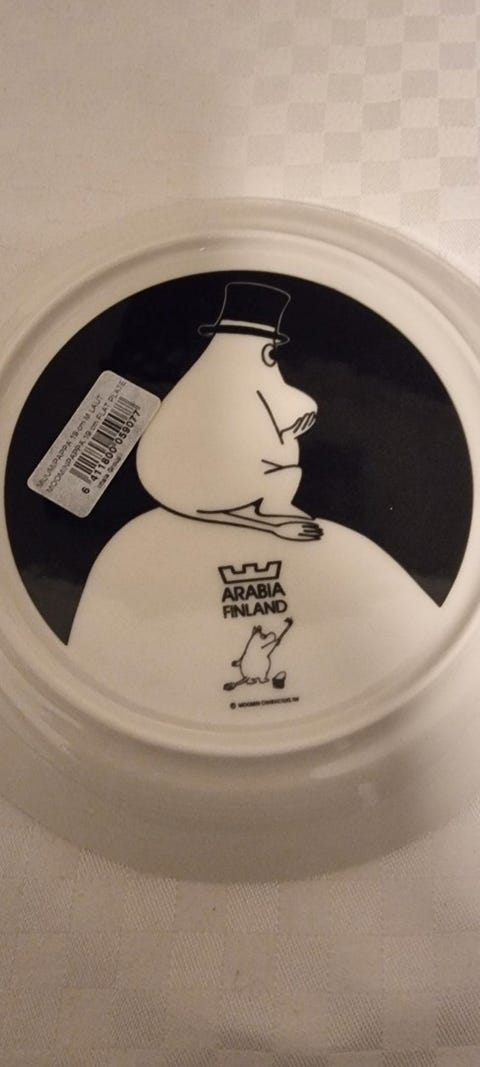 22 €Muumikulho: Muumipappa tuumiskelee, musta (2004-2013)Tyrnävä, Tyrnävä, Pohjois-Pohjanmaa4.12.FinmugLisää suosikiksi.
