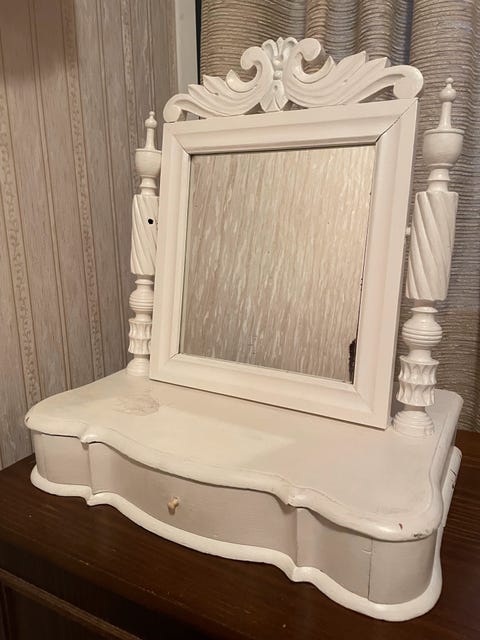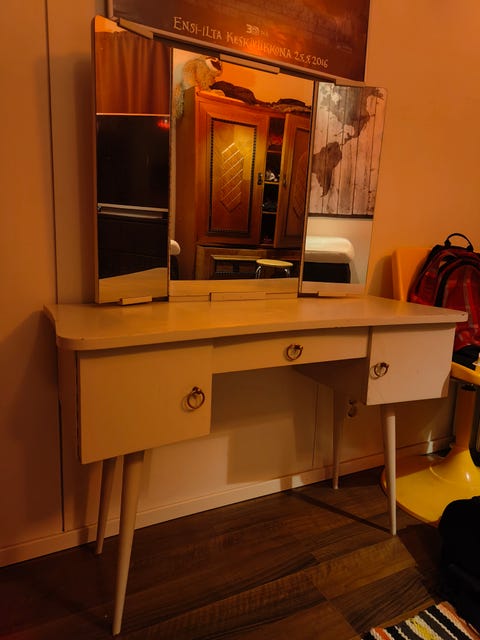 39 €Vanha valkoinen puinen meikkipöytä peilillä ja laatikoillaHelsinki, Konala, Uusimaa3.11.Lisää suosikiksi.