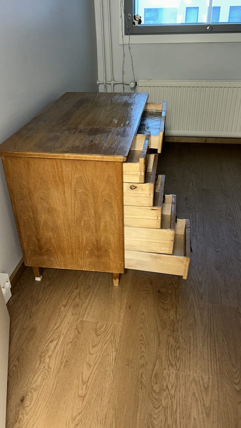Vanha lipasto voi olla persoonallinen lisä muuten modernisti sisustettuun tilaan. Sama koskee luonnollisesti erilaisia hyllyjä. Käytettyjen kalusteiden tuunaaminen on monelle myös rakas harrastus tai mukava lomaprojekti.
