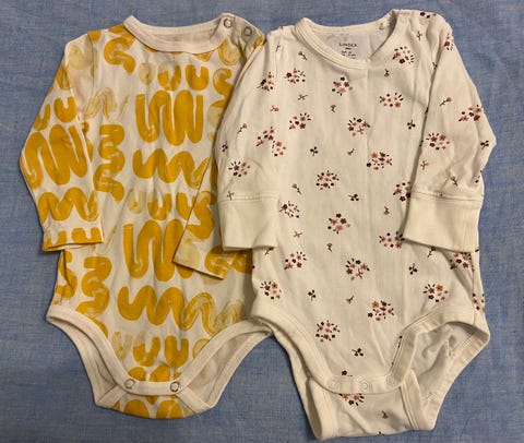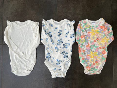 Vauvan body likaantuu usein, ja vaatekaappiin kannattaa ostaa iso varasto