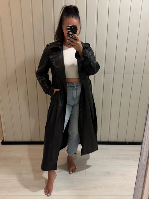 Musta tekoturkis takki M