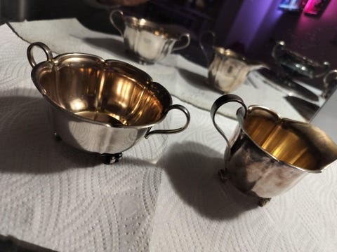 Jos hankit aterimia ja pöytähopeita käytettynä, muistathan että niitä kannattaa kiillottaa säännöllisesti. Netistä löydät runsaasti vinkkejä esimerkiksi hopean puhdistukseen. Toki vanhassa esineessä saa monen mielestä myös näkyä jonkin verran ajan patinaa. Myös oikea säilyttäminen auttaa pitämään vanhat hopeat kiiltävinä: pöytähopeat kannattaa säilyttää joko alkuperäisissä laatikoissa tai esimerkiksi puuvilla- tai minigrip-pusseissa, mieluiten valolta suojattuna.