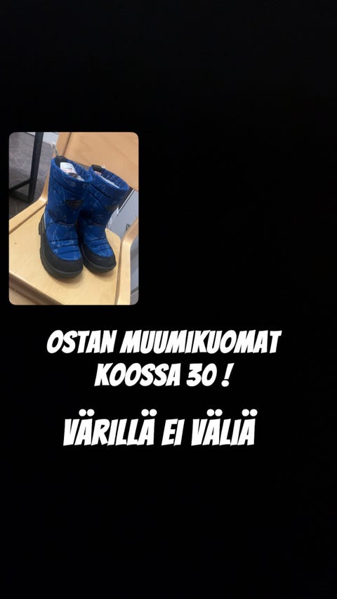 Lasten talvikengät voi löytää usein edullisemmin käytettynä. Torissa on nytkin 12 144 ilmoitusta, joissa myydään erilaisia lasten talvisaappaita ja -kenkiä. Parhaat lasten talvikengät ovat luonnollisesti keliin sopivat. Lauhalla ja märällä talvisäällä tarvitaan kengät, jotka suojaavat kosteudelta. Kireällä pakkasella monen mielestä kaikista parasta lapsen jalkaan voivat olla nahkaiset, villavuoriset kengät. Kannattaa myös laittaa pieneksi jääneitä lasten talvikenkiä aktiivisesti kiertoon ja antaa muiden kokea löytämisen ilo!