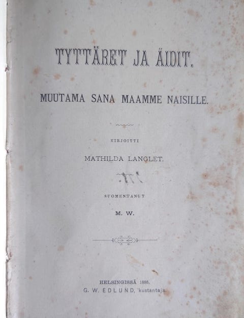 12 €Mathilda Langlet : Tyttäret ja äidit 1886Oulu, Pateniemi, Pohjois-Pohjanmaa13.12.Lisää suosikiksi.