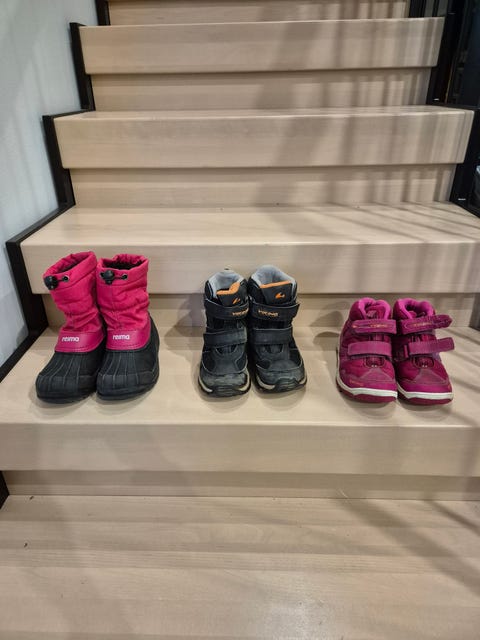 Laadukkaat, säänkestävät kengät ovat usein melko arvokkaita. Käytettynä voit saada esimerkiksi talvikengät halvemmalla ja voit jopa mahdollisesti ostaa varalle toisen parin talvikenkiä niitä aamuja varten, kun kengät eivät ole ehtineet kuivua edellisen illan lumileikkien jäljiltä ja päiväkotiin pitää päästä lähtemään. Myös välikausikengät, lasten lenkkarit ja kumisaappaat ovat kovalla käytöllä ja jäävät pieneksi lasten kasvaessa. Jos suunnittelet lasten kenkien ostamista käytettynä, kannattaa luonnollisesti katsoa ilmoituksesta kenkien kunto ja tutustua esim. Valmistajan sivuilta kokotaulukkoon.