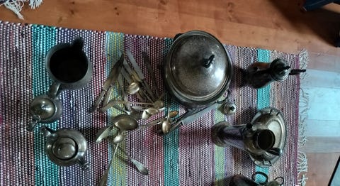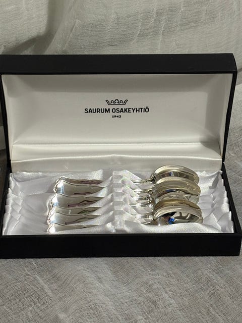 Jos hankit aterimia ja pöytähopeita käytettynä, muistathan että niitä kannattaa kiillottaa säännöllisesti. Netistä löydät runsaasti vinkkejä esimerkiksi hopean puhdistukseen. Toki vanhassa esineessä saa monen mielestä myös näkyä jonkin verran ajan patinaa. Myös oikea säilyttäminen auttaa pitämään vanhat hopeat kiiltävinä: pöytähopeat kannattaa säilyttää joko alkuperäisissä laatikoissa tai esimerkiksi puuvilla- tai minigrip-pusseissa, mieluiten valolta suojattuna.