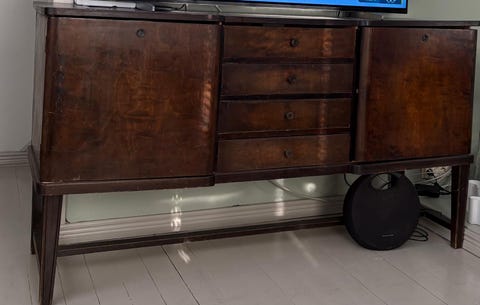 Vanha lipasto voi olla persoonallinen lisä muuten modernisti sisustettuun tilaan. Sama koskee luonnollisesti erilaisia hyllyjä. Käytettyjen kalusteiden tuunaaminen on monelle myös rakas harrastus tai mukava lomaprojekti.