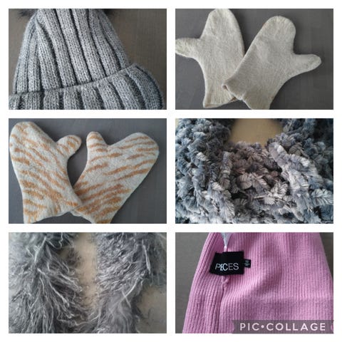 Hatun, kaulahuivin ja käsineet voit ostaa myös käytettynä