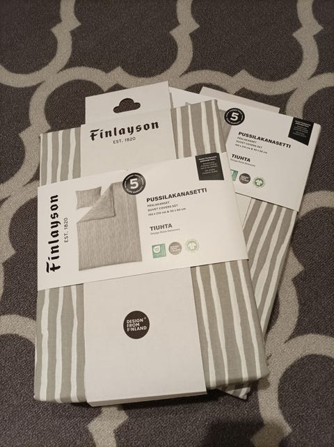 60 €Kaksi käyttämätöntä Finlayson Tiuhta -pussilakanasettiä FinlaysonTampere, Rahola, Pirkanmaa1 pvLisää suosikiksi.