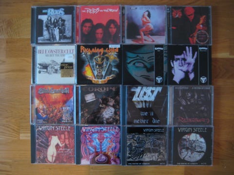 Cd-levyjä, metallia, rokkia