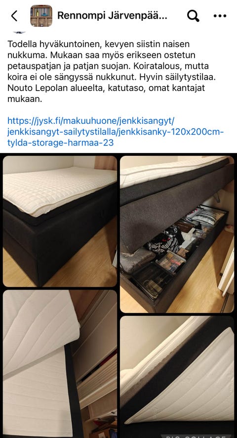 Löydä makuuhuoneen kalusteet edullisemmin käytettynä! Torissa on 11 458 ilmoitusta, joissa myydään kaikkea makuuhuoneeseen.