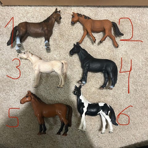 20 €Schleich Hevoslelut 6 kpl eri värejä ja malleja SchleichOulu, Höyhtyä, Pohjois-Pohjanmaa23.11.Lisää suosikiksi.