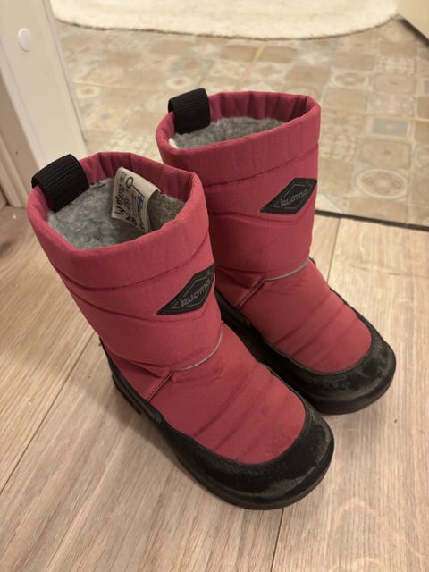 Laadukkaat, säänkestävät kengät ovat usein melko arvokkaita. Käytettynä voit saada esimerkiksi talvikengät halvemmalla ja voit jopa mahdollisesti ostaa varalle toisen parin talvikenkiä niitä aamuja varten, kun kengät eivät ole ehtineet kuivua edellisen illan lumileikkien jäljiltä ja päiväkotiin pitää päästä lähtemään. Myös välikausikengät, lasten lenkkarit ja kumisaappaat ovat kovalla käytöllä ja jäävät pieneksi lasten kasvaessa. Jos suunnittelet lasten kenkien ostamista käytettynä, kannattaa luonnollisesti katsoa ilmoituksesta kenkien kunto ja tutustua esim. Valmistajan sivuilta kokotaulukkoon.