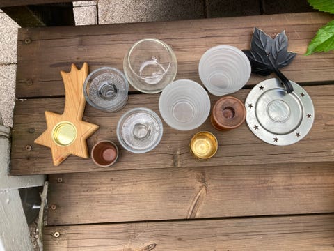 Hanki useampi erilainen, mutta samantyylinen kynttilänjalka ja tee niistä kollaasi juhlapöytään