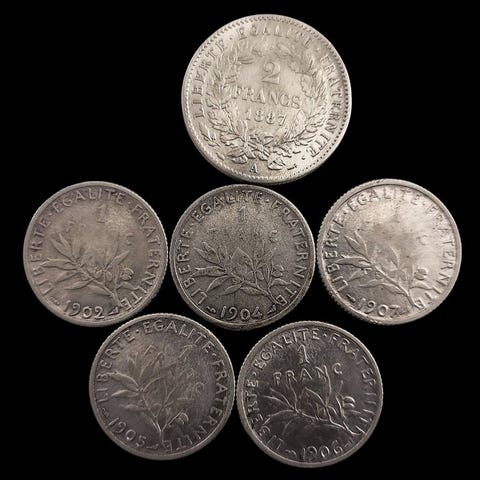 80 €Ranska. Silver 5x 1 Franc + 1x 2 Francs Coins (34,35g)Helsinki, Keskusta - Etu-Töölö, Uusimaa6 tCatawikiLisää suosikiksi.