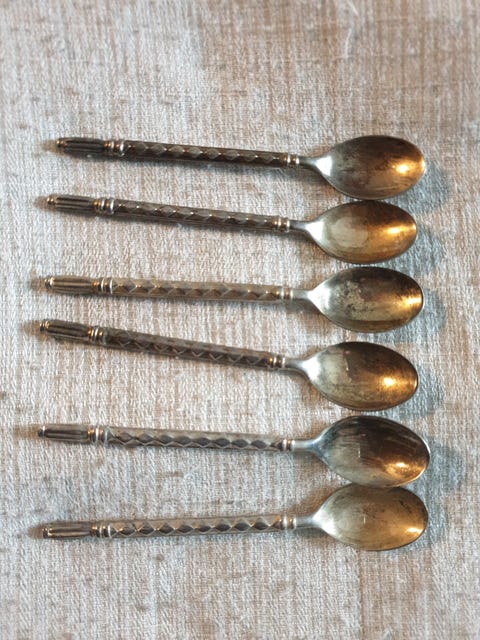 Jos hankit aterimia ja pöytähopeita käytettynä, muistathan että niitä kannattaa kiillottaa säännöllisesti. Netistä löydät runsaasti vinkkejä esimerkiksi hopean puhdistukseen. Toki vanhassa esineessä saa monen mielestä myös näkyä jonkin verran ajan patinaa. Myös oikea säilyttäminen auttaa pitämään vanhat hopeat kiiltävinä: pöytähopeat kannattaa säilyttää joko alkuperäisissä laatikoissa tai esimerkiksi puuvilla- tai minigrip-pusseissa, mieluiten valolta suojattuna.