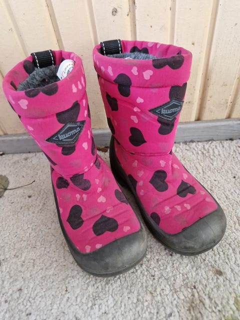 Laadukkaat, säänkestävät kengät ovat usein melko arvokkaita. Käytettynä voit saada esimerkiksi talvikengät halvemmalla ja voit jopa mahdollisesti ostaa varalle toisen parin talvikenkiä niitä aamuja varten, kun kengät eivät ole ehtineet kuivua edellisen illan lumileikkien jäljiltä ja päiväkotiin pitää päästä lähtemään. Myös välikausikengät, lasten lenkkarit ja kumisaappaat ovat kovalla käytöllä ja jäävät pieneksi lasten kasvaessa. Jos suunnittelet lasten kenkien ostamista käytettynä, kannattaa luonnollisesti katsoa ilmoituksesta kenkien kunto ja tutustua esim. Valmistajan sivuilta kokotaulukkoon.