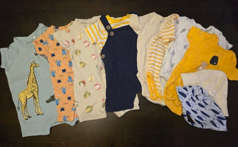 Lastenhuoneen vaatekaapista kannattaa löytyä sen verran lastenvaatteita, ettei pyykkikonetta tarvitse jatkuvasti käynnistää. Kannattaakin miettiä, voisiko ainakin osan ostaa käytettynä: esimerkiksi vauvan bodyt likaantuvat helposti, ja niitä on hyvä olla vauvaperheessä reilusti. Kauniit lasten villapaidat ja mekot jäävät usein pieneksi muutaman käyttökerran jälkeen, ja niitä on hyvä laittaa kiertoon ja lisätä näin vaatteen käyttöikää. Ulkovaatteista esimerkiksi talvi- ja välikausihaalarit voi hyvin hankkia käytettynä, sillä erityisesti laadukkaiden merkkien haalarit kestävät useammankin lapsen lumessa ja ravassa ryömimisen ja temmeltämisen varsin hyvin.