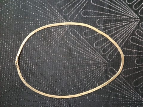 17 €Teräksinen kaulakoru kullan värisellä pinnoitteellaLahti, Nastola kk, Päijät-Häme17.10.Lisää suosikiksi.