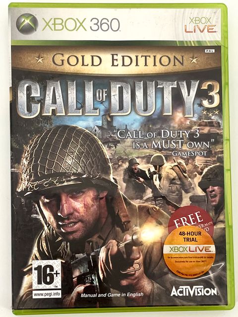 20 €Call of Duty 3 Gold Edition Xbox 360Lumijoki, Lumijoki, Pohjois-Pohjanmaa4.5.Second Disc Oy / LumijokiLisää suosikiksi.