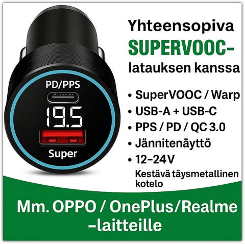 21 €Pikalataus / SuperVooc-autolaturi + 1,5m OnePlus-johtoVantaa, Mikkola, Uusimaa6.11.2025Pieni Nettipuoti – Uutta ja käyttämätöntä laidasta laitaanLisää suosikiksi.