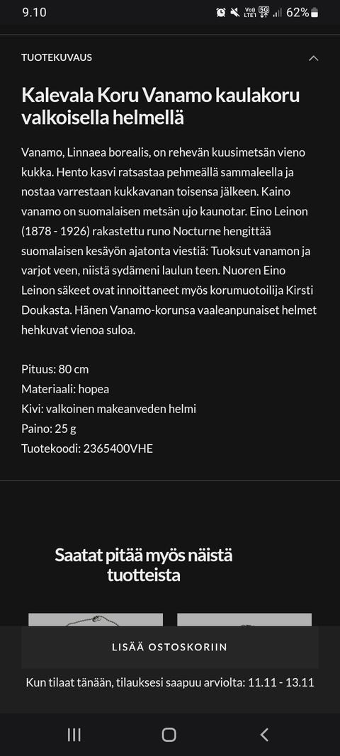 50 €Kalevala Kuutar Kaulakoru KalevalaHelsinki, Länsi-Pasila, Uusimaa1 pvOsta hetiLiikkeessä oleva kuorma-autoToriDiiliLisää suosikiksi.