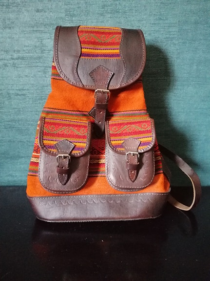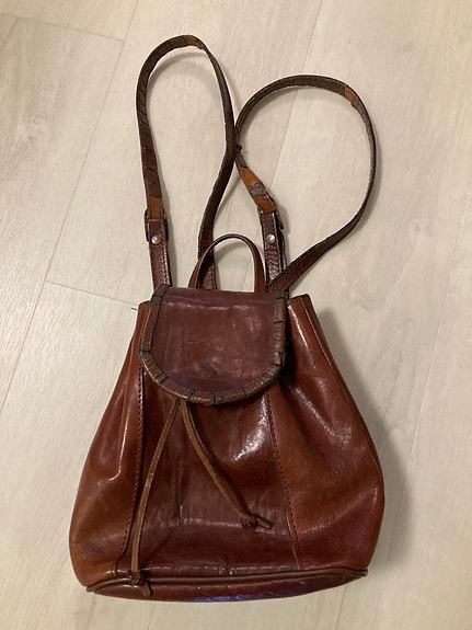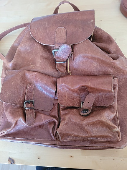 Nahkainen ruskea selkä reppu