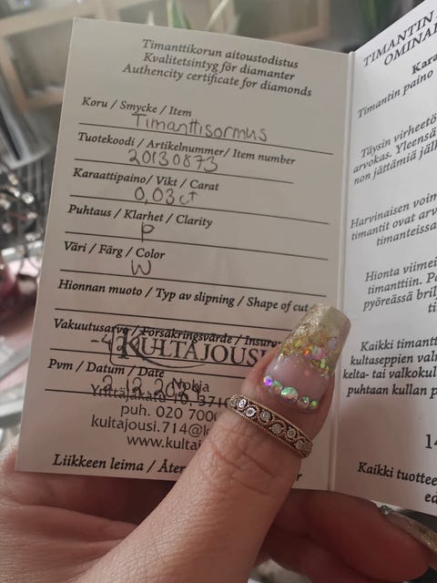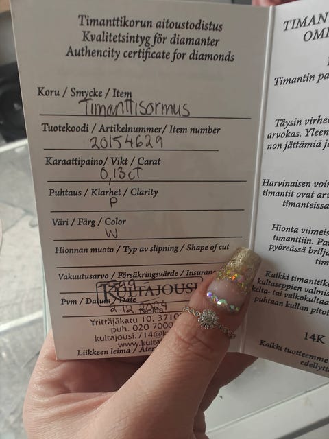 150 €Valkokultainen timanttisormus, rasia ja todistusLahti, Mukkula, Päijät-Häme27.1.Lisää suosikiksi.