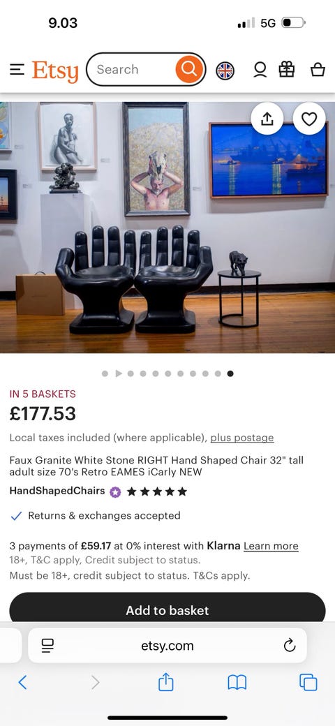 OstetaanOstetaan ”käsi” tuoli/Pop Art / retro hand chairKangasala, Kangasala Keskus, Pirkanmaa1 pvLisää suosikiksi.