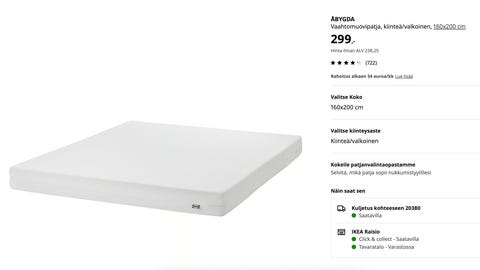 190 €IKEA ÅBYGDA patja 160cm-ähes uudenveroinen! IKEATurku, Turku Keskus, Varsinais-Suomi17.11.Lisää suosikiksi.