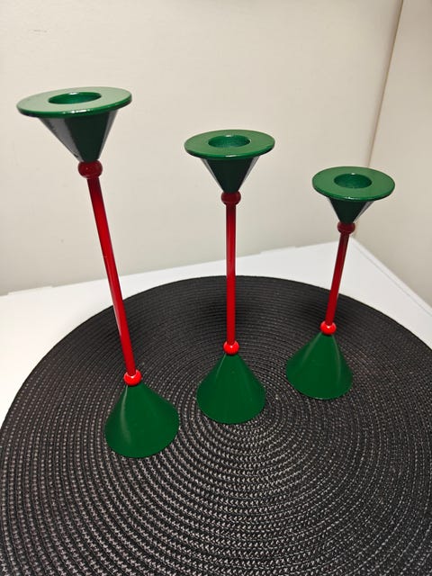 Hanki useampi erilainen, mutta samantyylinen kynttilänjalka ja tee niistä kollaasi juhlapöytään
