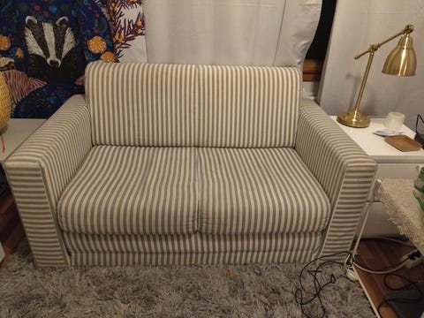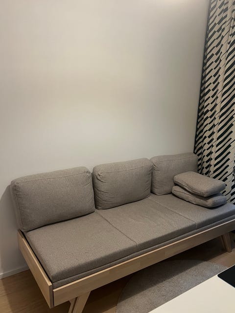 Vuodesohva sopii vieraiden majoitukseen ja omaksi sängyksi pieneen kotiin