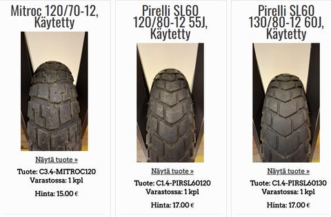 5 €Skootterin renkaitaUlvila, Ulvila Keskus, Satakunta15.5.2025Syrjänen Racing Motor OyLisää suosikiksi.