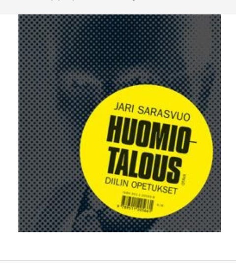 12 €Huomiotalous – Diilin opetukset, Jari Sarasvuo. Ovh.34,95Helsinki, Herttoniemi, Uusimaa25.11.Lisää suosikiksi.