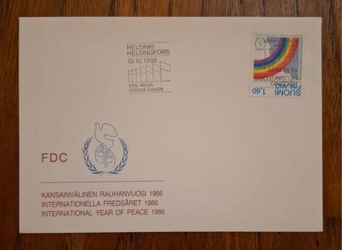 10 €FDC 1986 Kansainvälinen rauhanvuosi (harvinainen kappale)Helsinki, Mellunmäki, Uusimaa13.11.2025Lisää suosikiksi.