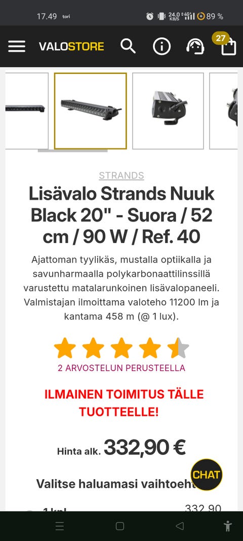 60 €purelux 56cm suora Lisävalo johtosarjalla ja rekisterikilpikiinnikkeelläIisalmi, Iisalmi Keskus Pohjoinen, Pohjois-Savo8 tLisää suosikiksi.