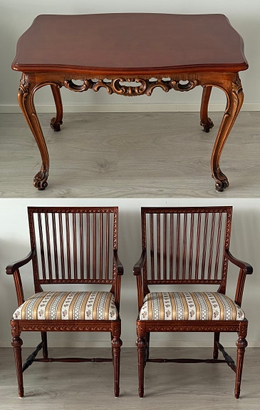 150 €Laitalan rokokoo-tyylinen pöytä ja kaksi tukevaa seniorituoliaTampere, Luoteis-Tampere, Pirkanmaa15.2.Lisää suosikiksi.