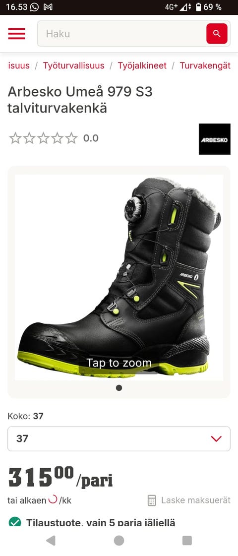 150 €Sievi Alaska Roller xl+s3 turvakengät koko 43Koko 43 SieviKeminmaa, Lautiosaari, Lappi26.11.Lisää suosikiksi.