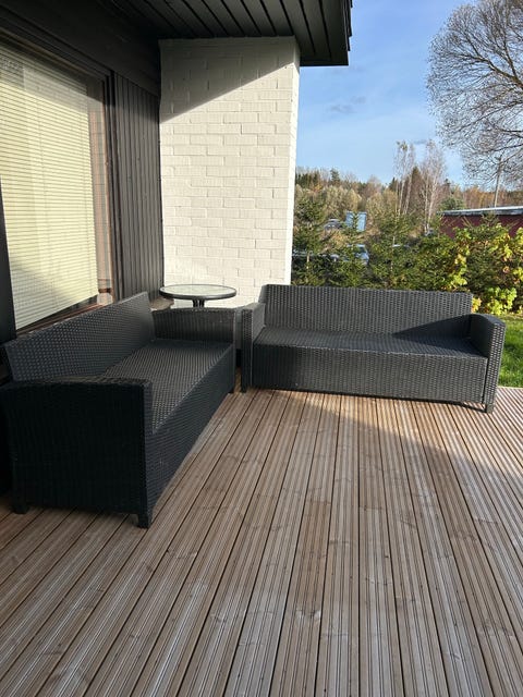 300 €Myydään ulkokalustesetti. Hyvässä kunnossa. Pöytä kuuluu mukaan.Espoo, Niittykumpu, Uusimaa13.10.Lisää suosikiksi.