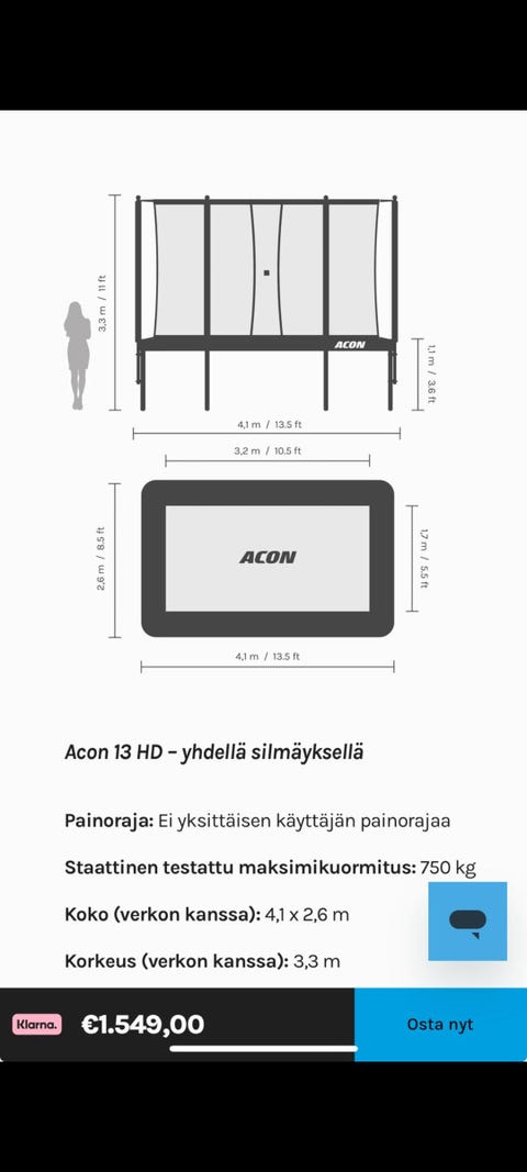 410 €POHJOLAPULSE SPORTS LUXUS Trampoliini Ø 427cm Turvaverkolla MUSTA EDITIONHelsinki, Keskusta - Etu-Töölö, Uusimaa28.4.2025Preeco.fiLisää suosikiksi.