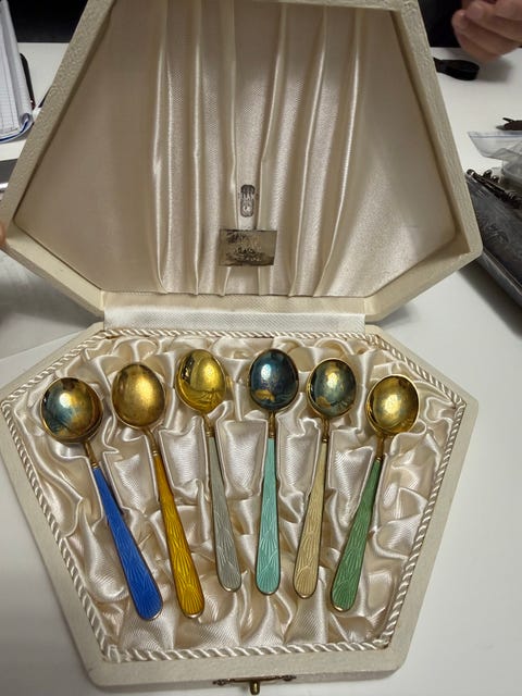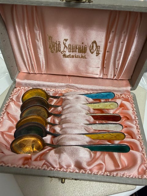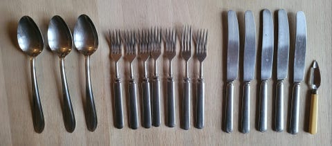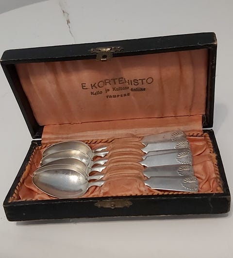Jos hankit aterimia ja pöytähopeita käytettynä, muistathan että niitä kannattaa kiillottaa säännöllisesti. Netistä löydät runsaasti vinkkejä esimerkiksi hopean puhdistukseen. Toki vanhassa esineessä saa monen mielestä myös näkyä jonkin verran ajan patinaa. Myös oikea säilyttäminen auttaa pitämään vanhat hopeat kiiltävinä: pöytähopeat kannattaa säilyttää joko alkuperäisissä laatikoissa tai esimerkiksi puuvilla- tai minigrip-pusseissa, mieluiten valolta suojattuna.