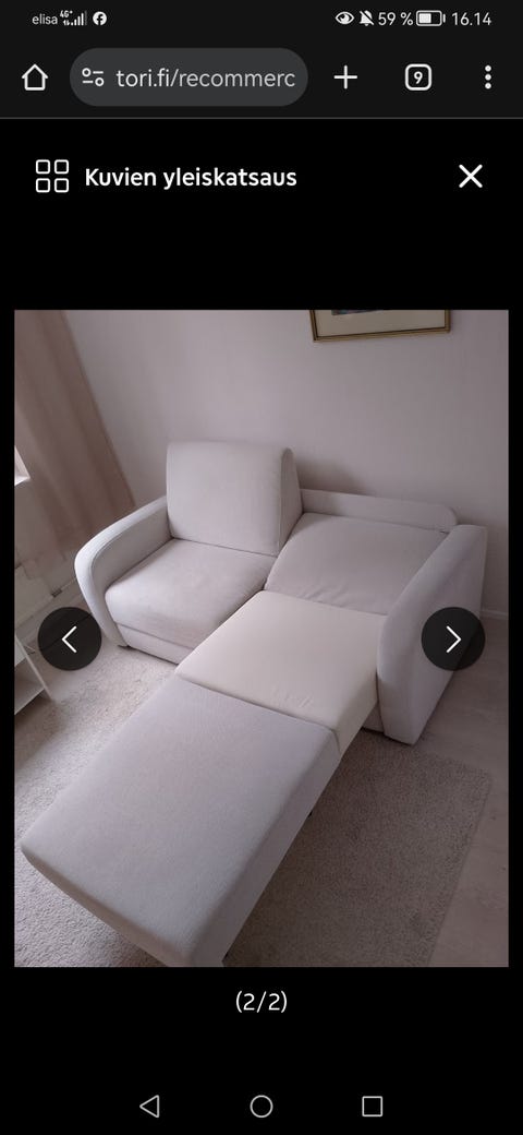 Sohvan hankinta tulee ajankohtaiseksi usein, kun edessä on muutto uuteen kotiin tai kun vanha rakas kaluste tulee tiensä päähän. Torista voit löytää sekä pieniä sohvia että isompia sohvaryhmiä. Moni haluaa kotiinsa tai mökille vuodesohvan, sillä sen avulla pienenkin tilan pystyy käyttämään tehokkaasti. Lepotuoli on pienempi hankinta kotiin, ja ilmoituksista voit löytää sekä perusmerkkien uudehkoja nojatuolimalleja että uniikkeja, vanhoja nojatuoleja.