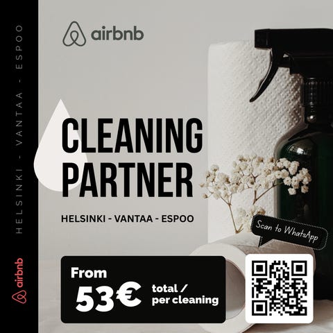 MyydäänAirbnb - siivous Helsinki / Espoo / Vantaa – alkaen 53 € / siivousEspoo, Kauklahti, Uusimaa1 pvLisää suosikiksi.